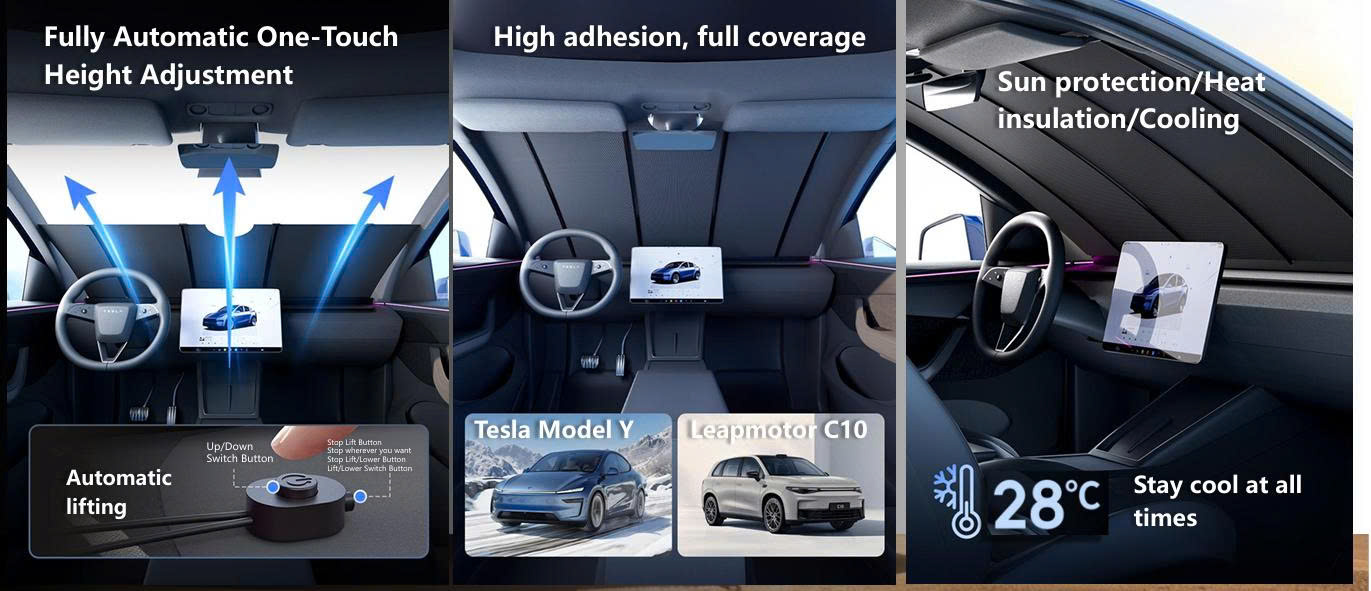 Với thiết kế nhỏ gọn, tiện lợi và thẩm mỹ, Rèm điện tự động che nắng ECoolsun cho kính lái xe ô tô có những ưu điểm sau đây: